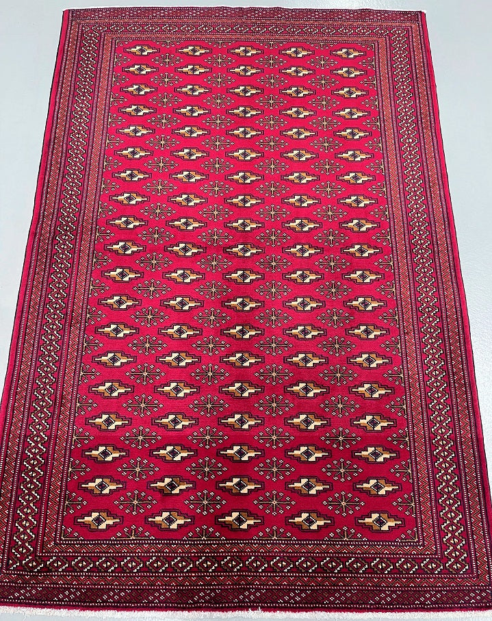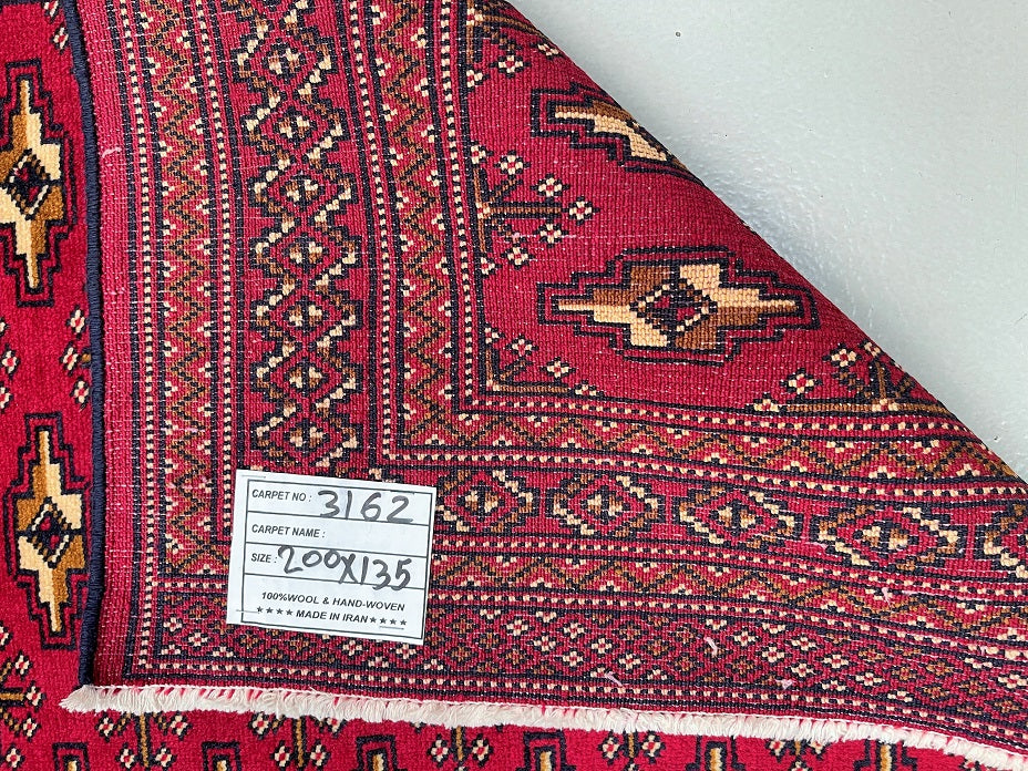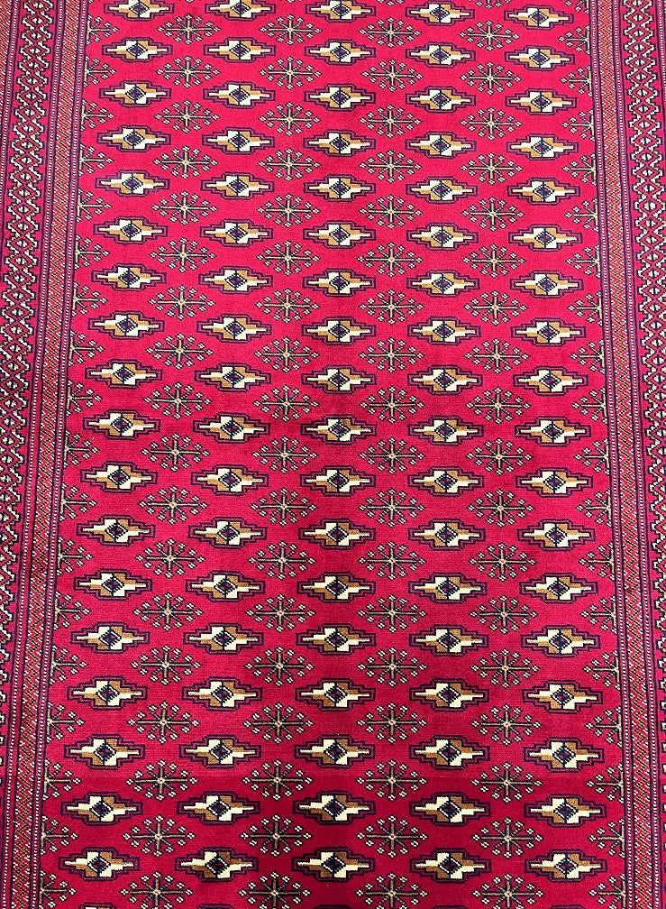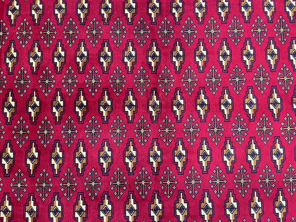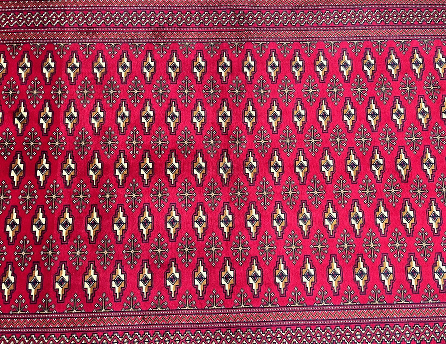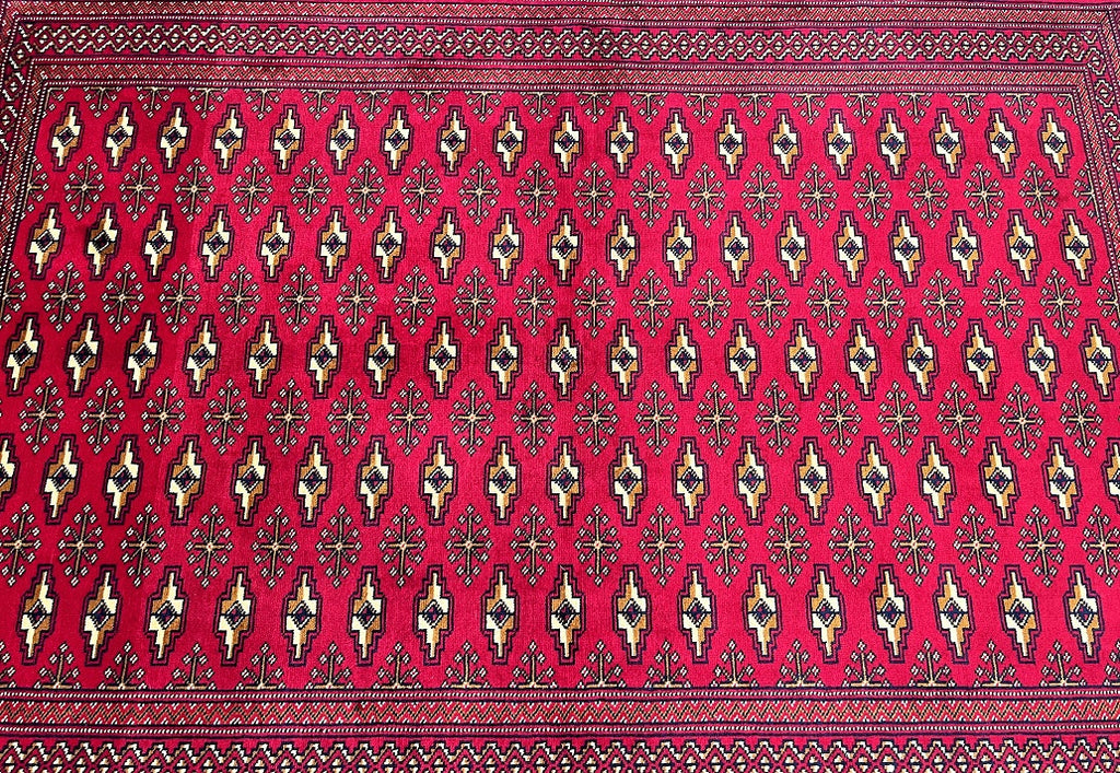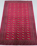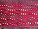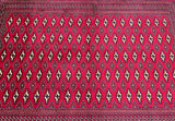 Authentic Bokhara Design Handmade Vintage Persian Turkoman Rug. Above All It Is Pure Hand Spun Wool Pile On Wool Base. It Also Has A Vibrant Maroon Red Tone Dyed Using Traditional Methods.