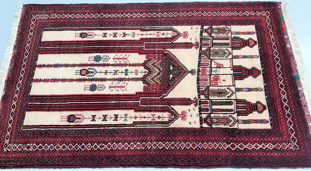Australia Wide Free Shipping Offered! Certified Hand Knotted Persian Rug 155x100cm Collectible Vintage Prayer Design Balouchi Rug Which Can Also Be Used As A Wall Hanging.One Of The Most Famous Design In Persian Carpet World Is Prayer Rug Pattern....