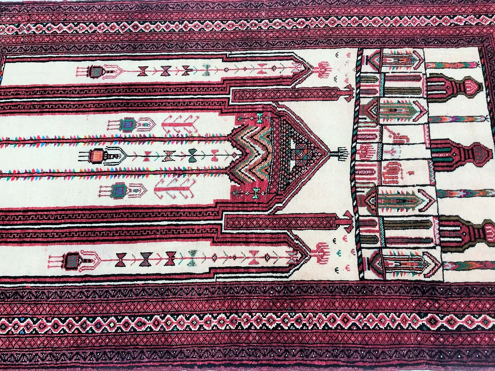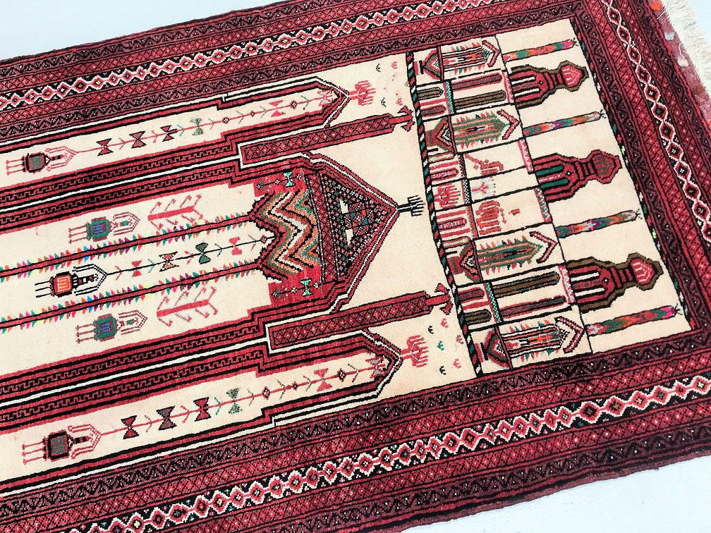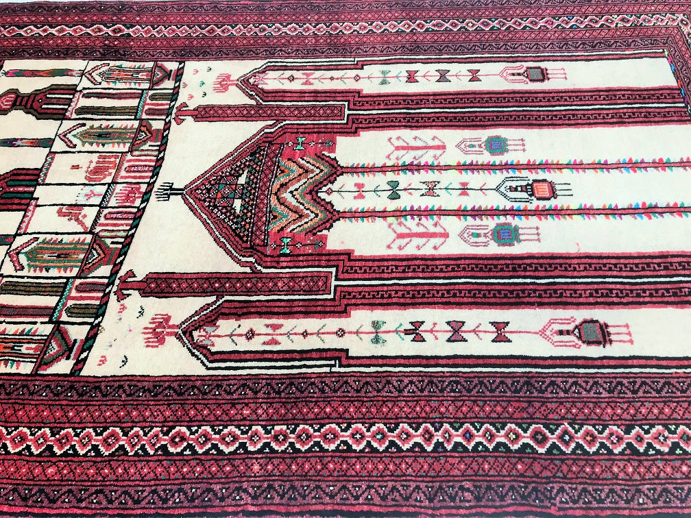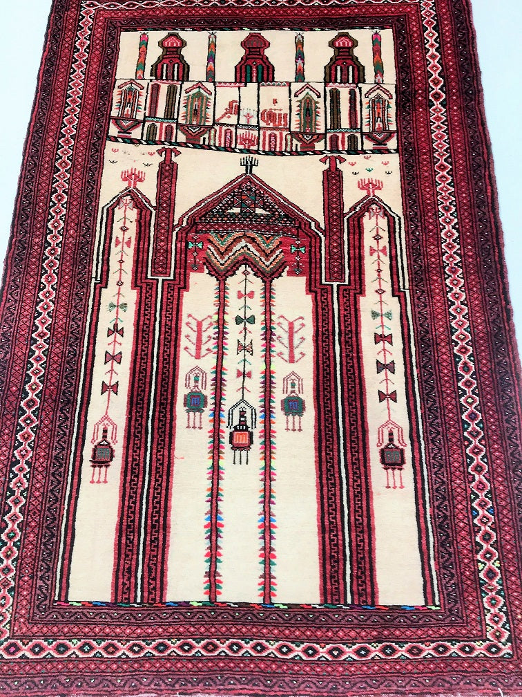 Collectible Vintage Prayer Design Balouchi Rug Which Can Also Be Used As A Wall Hanging.