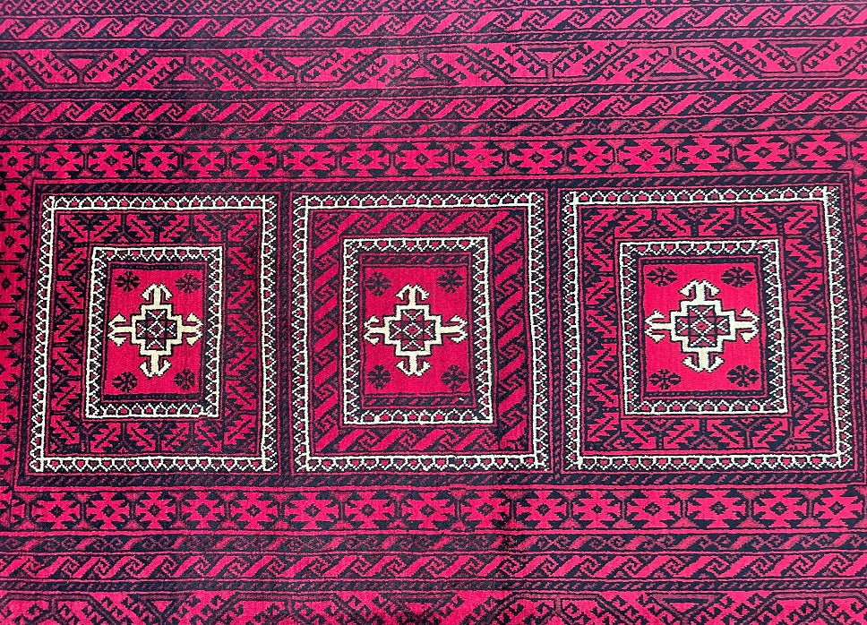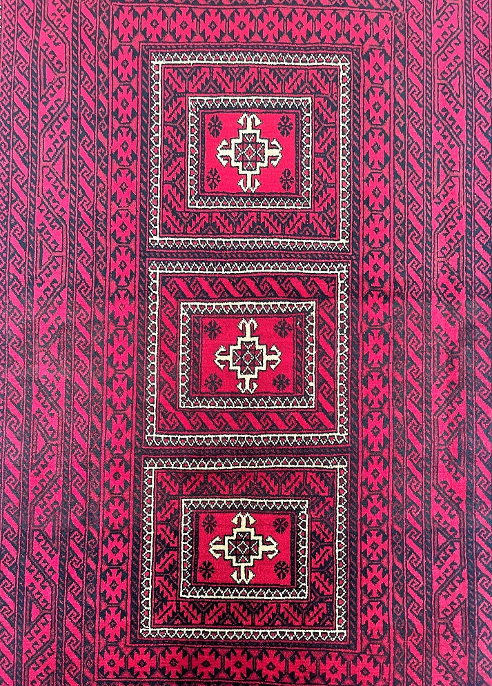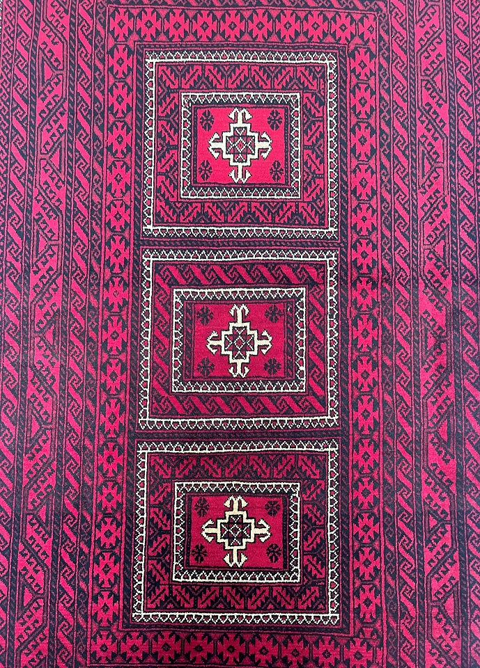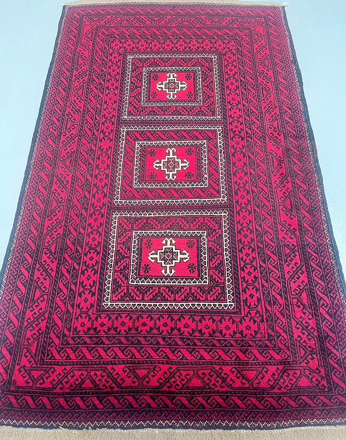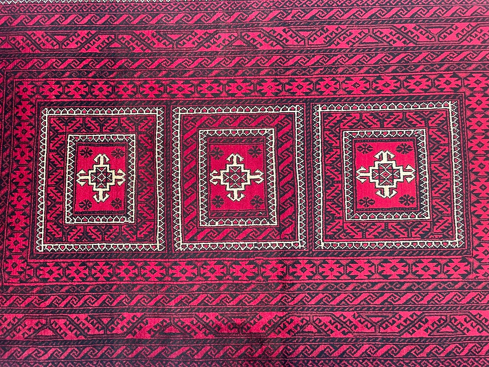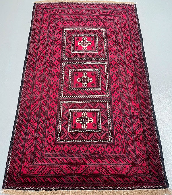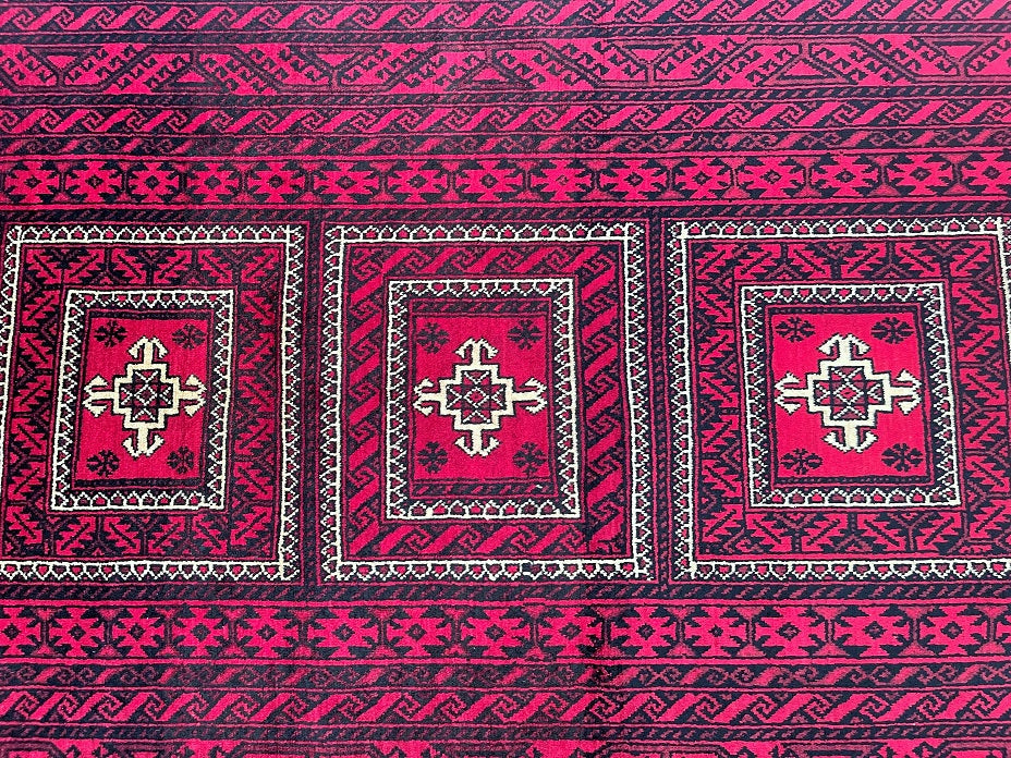 Collectible Authentic Handmade Vintage Persian Balouchi Rug. Above All It Has Pure Hand Spun Wool Pile On Wool Base. Rich Red/Maroon, Beige And Black Tones Dyed Using Traditional Methods.