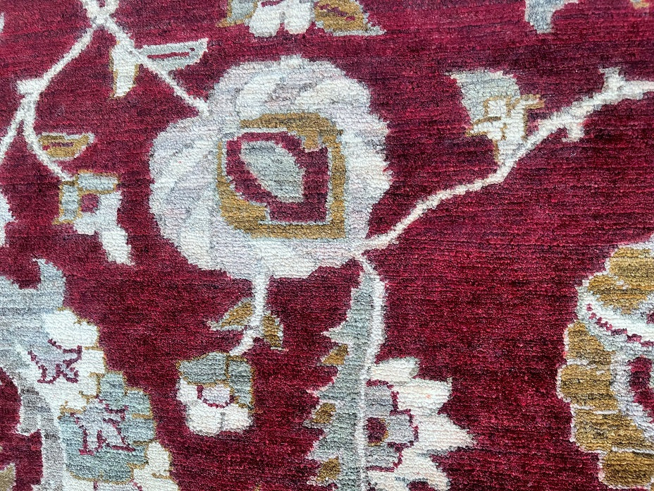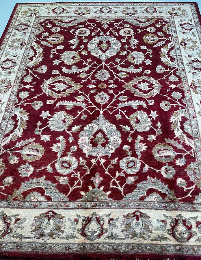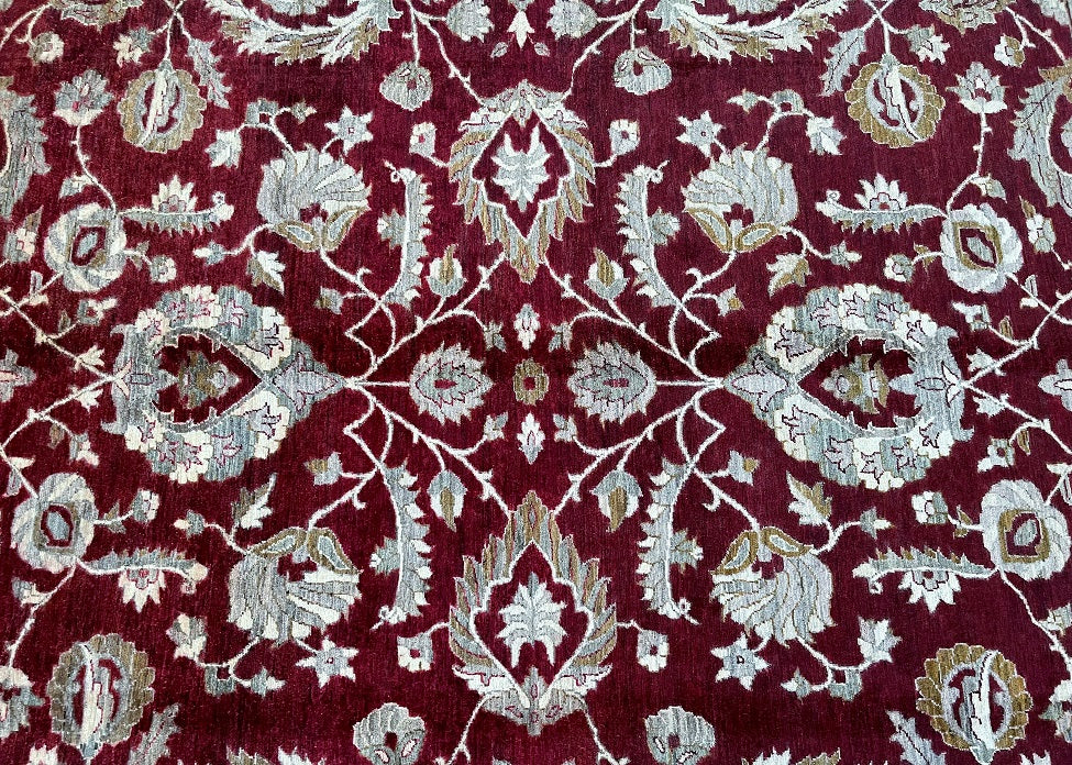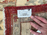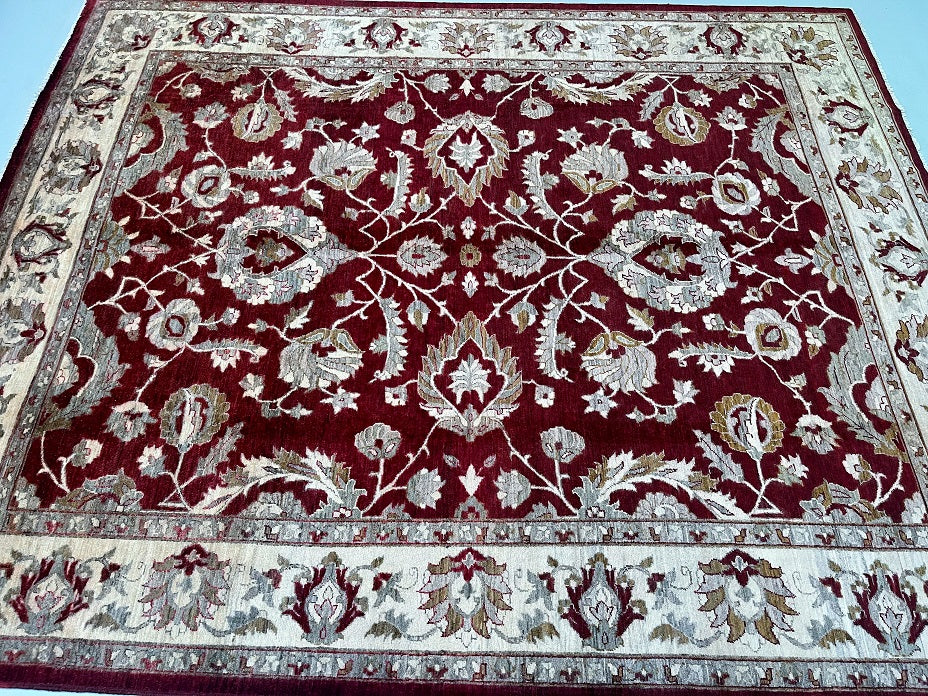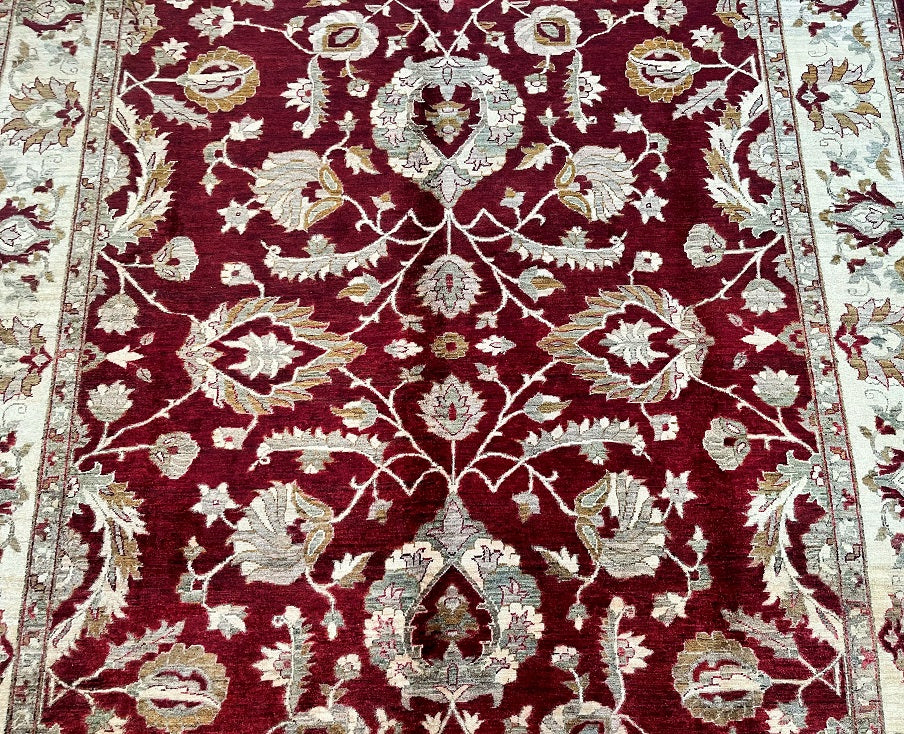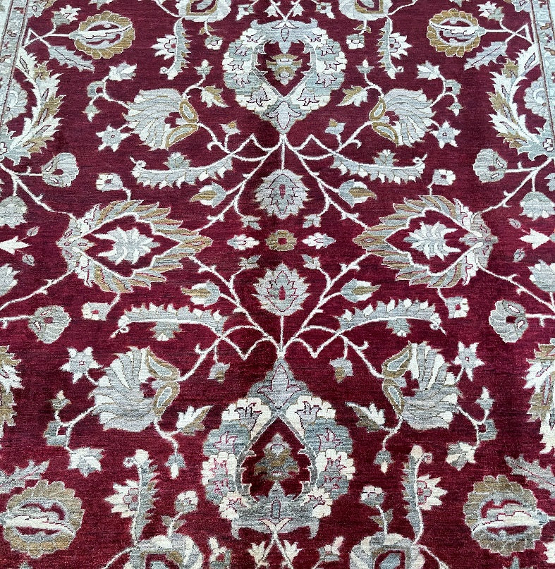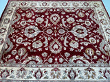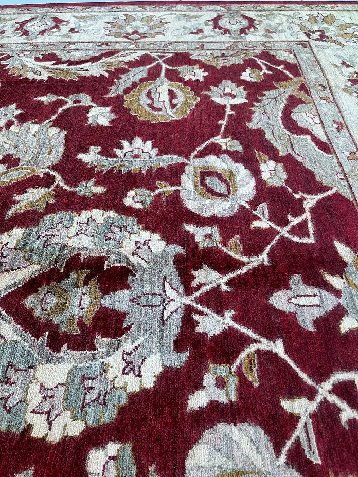 Large Room Size Authentic Hand Knotted Afghan Chobi Rug. Above All It Has A Pure Hand Spun Wool Pile On Cotton Base. Burgundy/Maroon, Beige, Orange and Green Tones Dyed Using Vegetable Dyes.